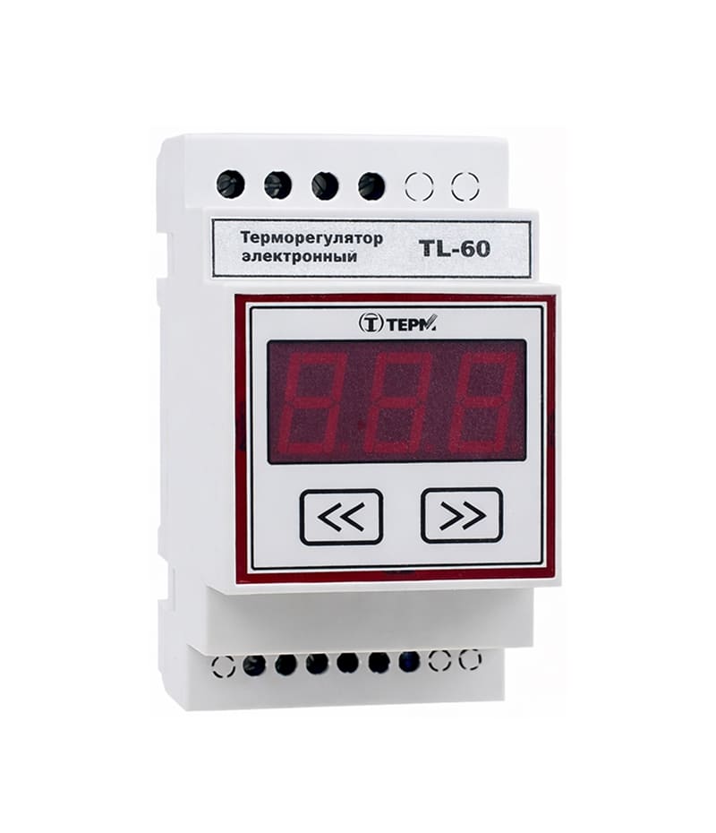 Терморегулятор TL-60 предназначен для управления обогревом трубопроводов, резервуаров и других объектов с помощью резистивных нагревательных лент типа НТН, ЭНГЛ-2 и других, с допустимой температурой на ленте до 60°C, для контроля температуры как на объекте, так и на ленте.